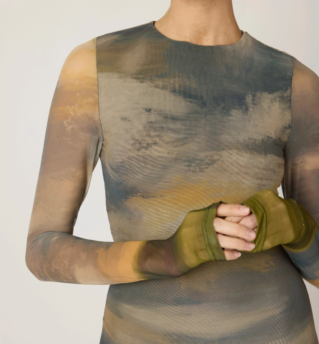 Ethically handmade in India from 88% recycled nylon and 12% elastane, the Persephone Ankle Dress is a sustainably crafted statement piece designed to stand out. This fitted mesh ankle-length dress features a hand-painted design and a delicate keyhole button closure at the back neck. Elegant and chic, it’s the perfect dress to elevate any fall occasion.